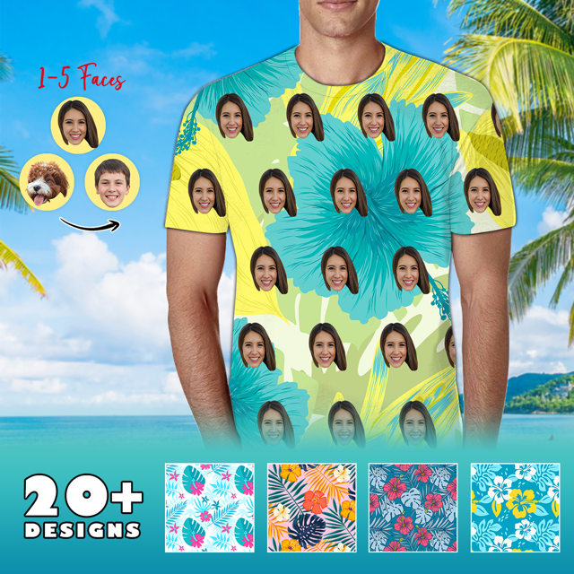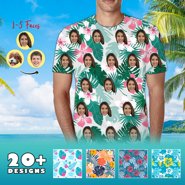 Custom Face Photo Short Sleeve – Personalized Photo Hawaiian T-Shirt – Casual Printed Beach Short Sleeve