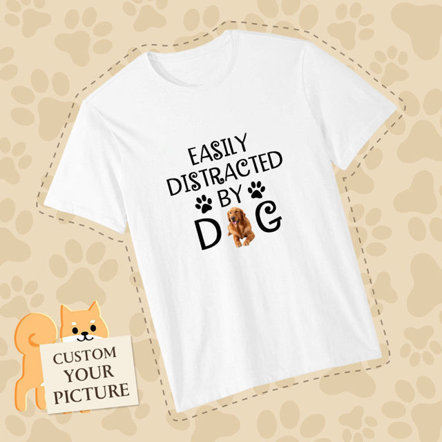 Custom Photo Short Sleeve T-shirt – Easily Distracted by Dog Shirt Pet Lovers T-shirt